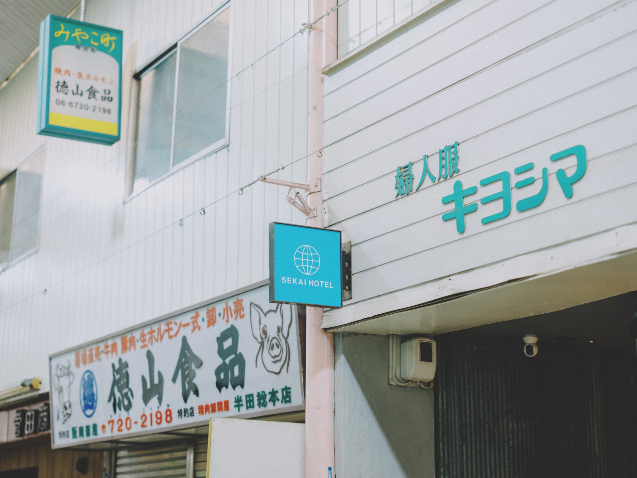 お部屋に荷物をいたらまずは、散策へ。八百屋さんにお肉屋さん、洋服店に、ミシンやさんも。さすがまちを支える商店街、なんでも揃っています。