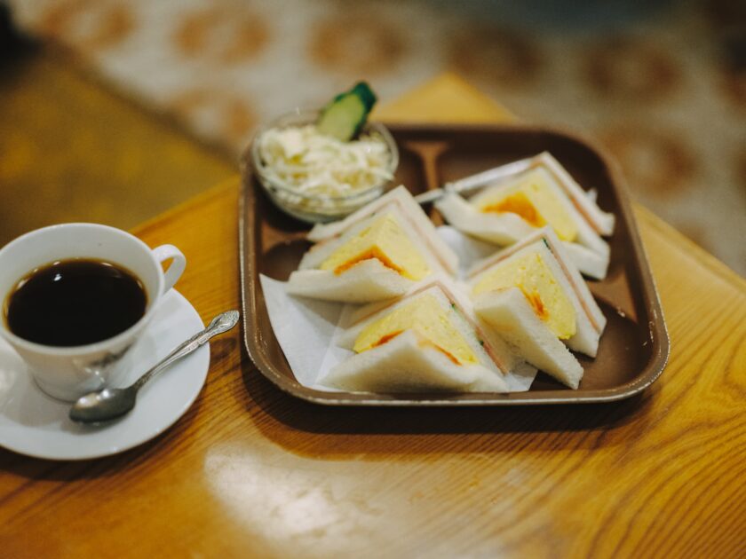 例えば卵サンドは厚焼き卵がスタンダード。ホットドッグには、カレー味で炒めたキャベツがアクセントに。