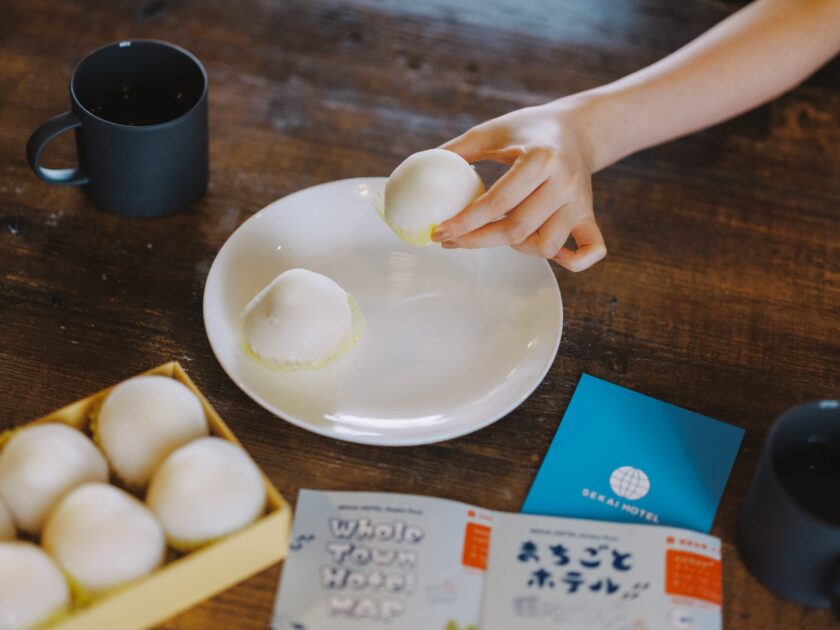 普段は我慢したいけど、旅行は特別!お部屋に用意されている老舗和菓子屋の「ふるーつ大福」を食べよう!