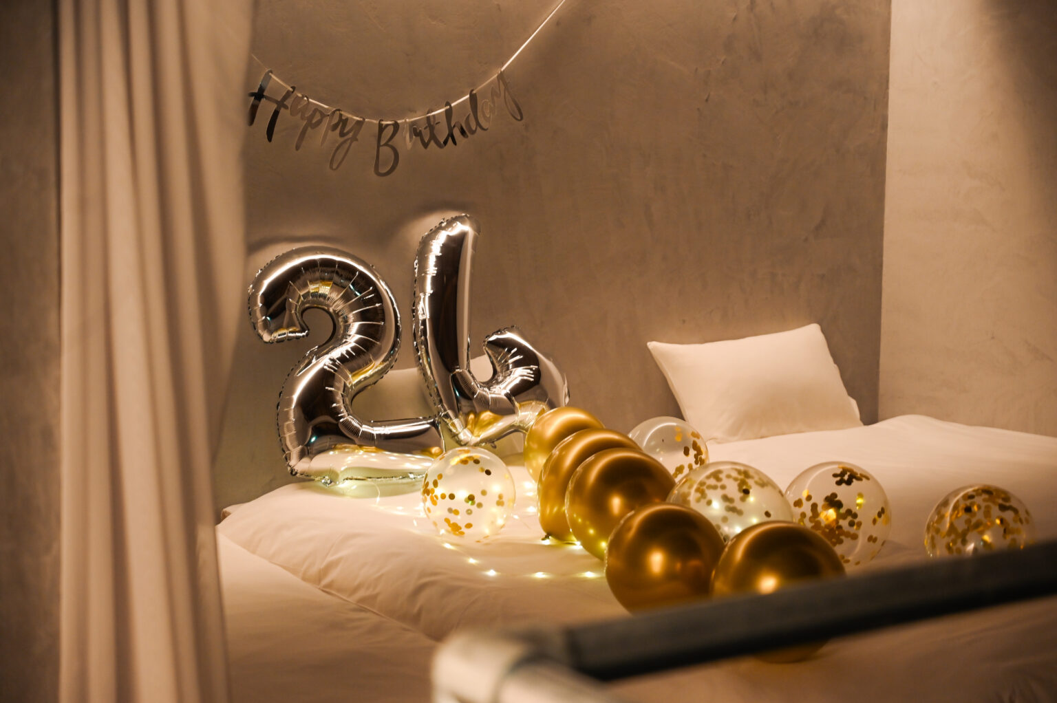 お部屋に戻ったらなんとびっくり!Happy Birthdayの文字が。