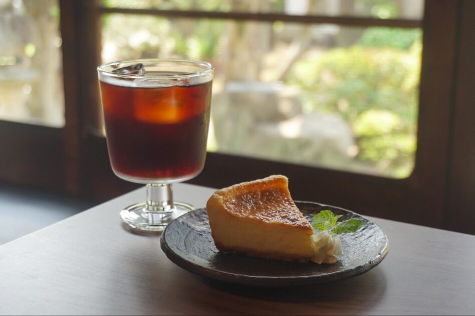 アイスコーヒーは、水出し。スッキリした口当たりが、チーズケーキとの相性を引き立ててくれる。ひと口、またひと口と、ゆっくり味わいたくなる組み合わせだ。