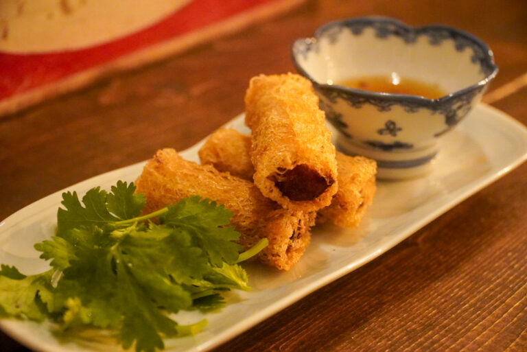 揚げ春巻きも忘れられない。魚のすり身と里芋を合わせて、サクッと揚げたひと皿。とろりとした甘みと香ばしさが、静かにあとを引く。