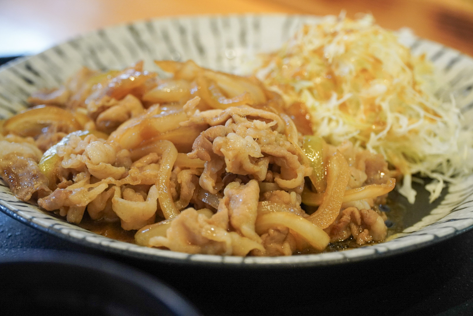 生姜焼きは、注文を受けてからブロック肉を専用機械で一枚ずつスライス。フライパンの上で香ばしい音を立てながら、あっという間にまちの昼を支配してしまう。
