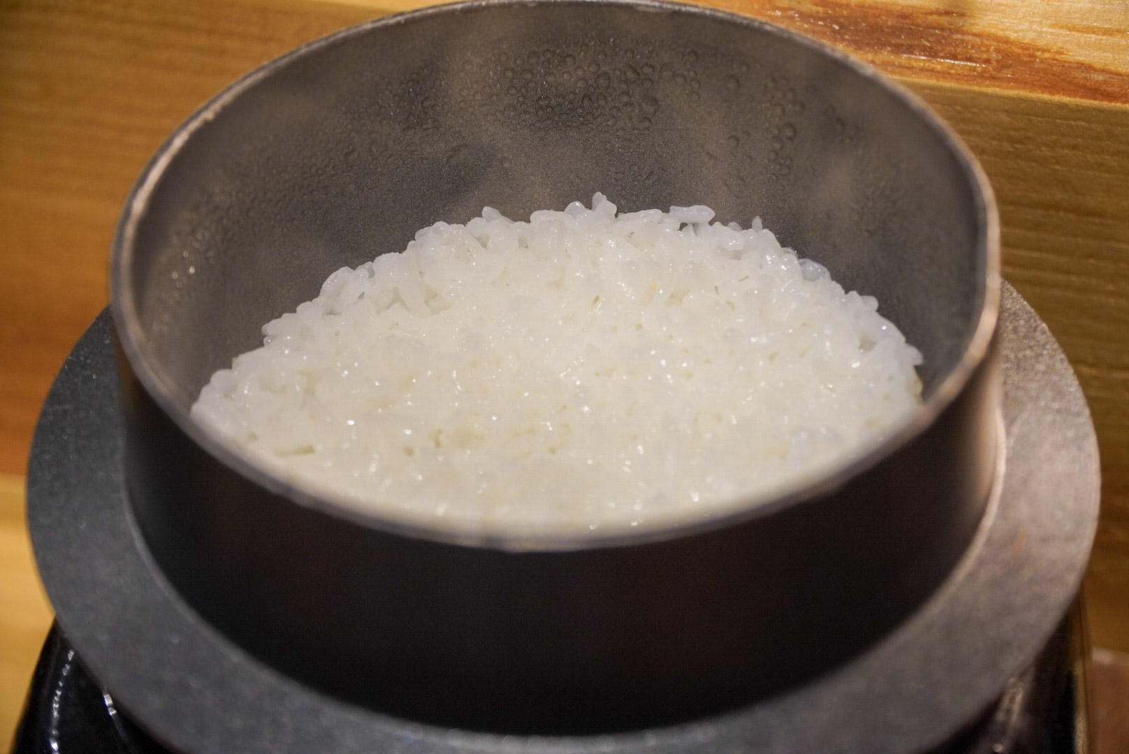 注文が通ると、店主がそっと小さな釜を手に取る。30分かけて炊きあげるご飯は、この店のもうひとつの看板だと思う。
