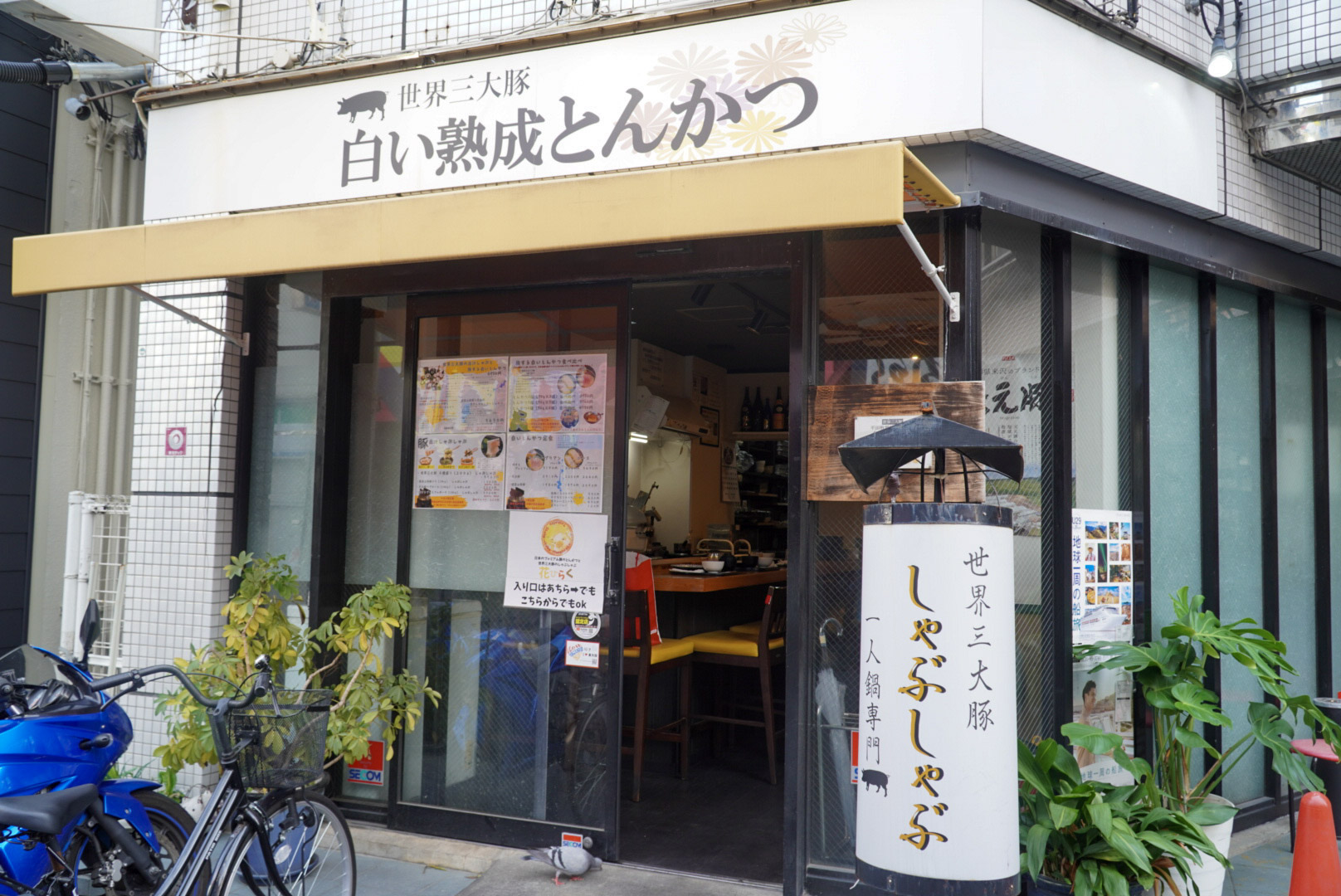 駅から少し歩いた場所にある「白い熟成とんかつ 花ひらく」。