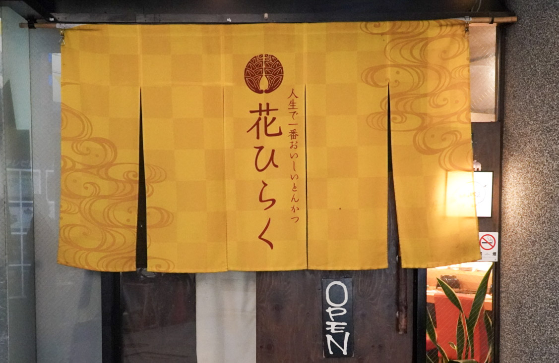 駅から少し歩いた先、「白い熟成とんかつ 花ひらく」の暖簾がゆっくり揺れる。