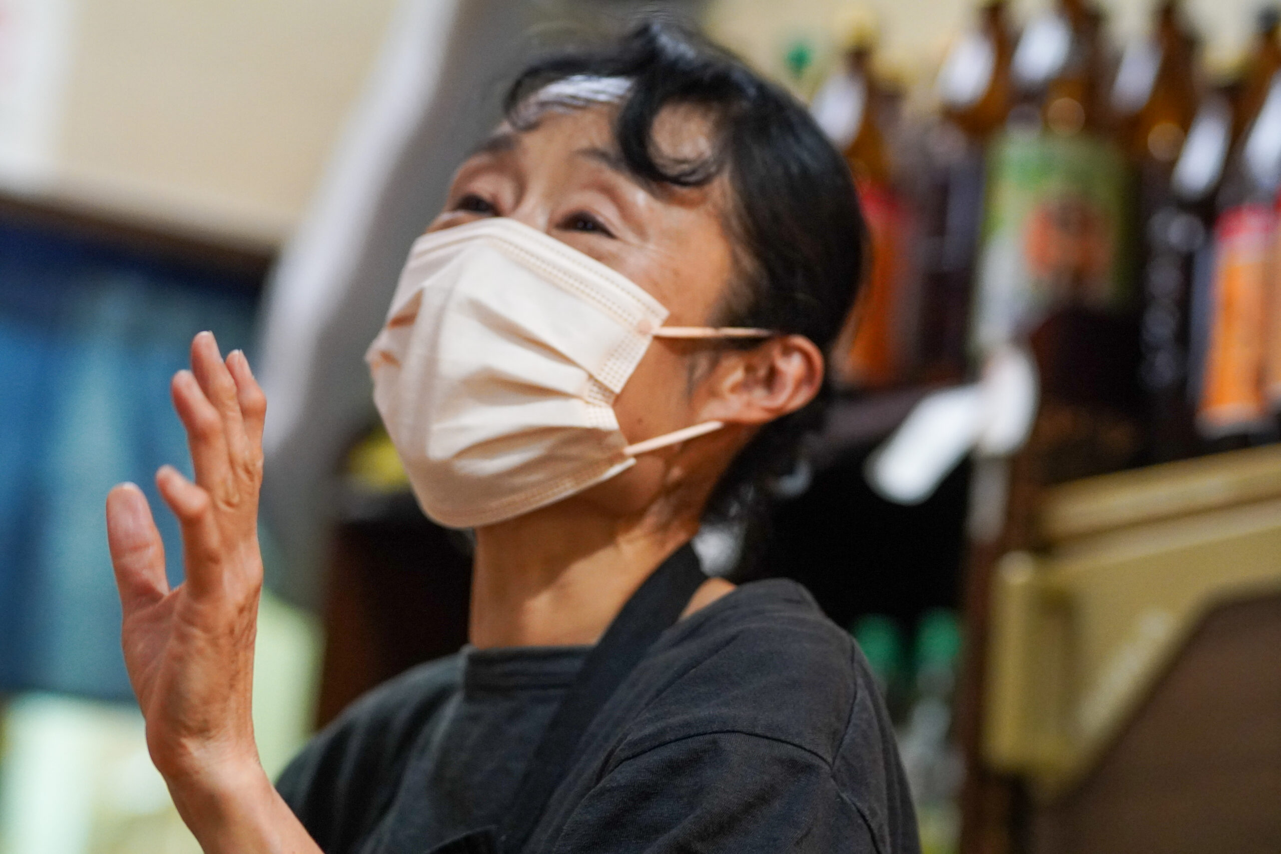 実は寺田家にとっては大常連のお店。 「SEKAI HOTEL宿泊の寺田です」と声をかけると、「あんたたちか〜!(笑)」と女将もびっくり。いつもの仲間に改めて“お客さん”として迎えられる、なんとも不思議な時間が流れます。